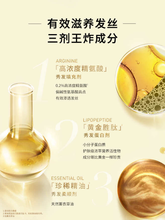 - **硬核修护:**主打高浓度精氨酸 + 黄金胜肽,填充发丝内部空洞。配合珍稀精油,官方实测滋养度即刻提升 98%,分叉减少 72%。