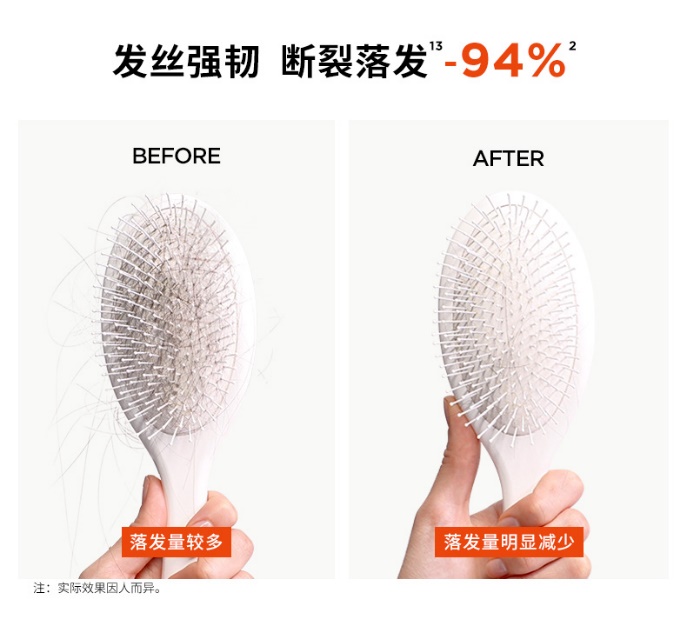 - **强韧度:**在针对体外发束的仪器测试中,使用该洗发水后,因断裂导致的落发数量减少了 94%,这对于有断发困扰的用户来说是核心福音。