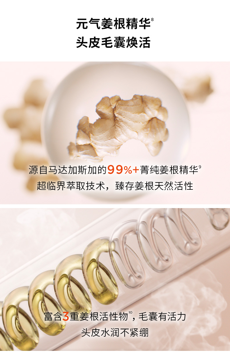 该产品构建了严密的生化逻辑:通过超临界流体萃取技术确保生姜活性组分的高纯度与高稳定性;配合咖啡因改善微循环,以及 OCT 因子深层净化毛囊油垢。其核心在于通过改善头皮微环境实现发根强韧。