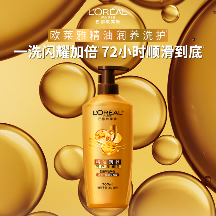 巴黎欧莱雅精油润养洗发露是针对干枯发质的长期滋养方案,¥79/700ml 具有良好的性价比。配方采用十重精萃油 +99% 高纯精油,精准补充发丝脂质,配合面护级净澈因子,洗完头皮保持清爽。